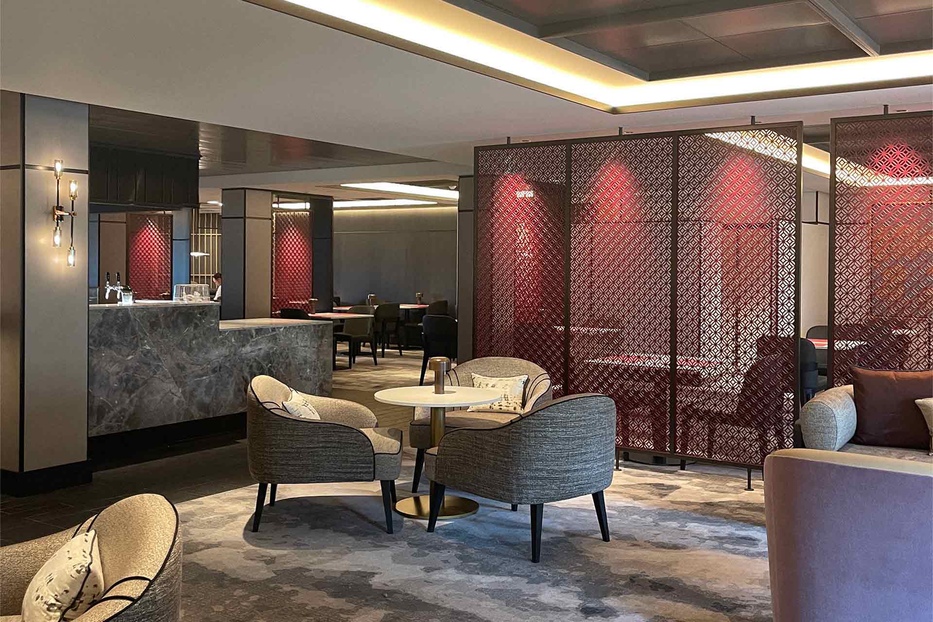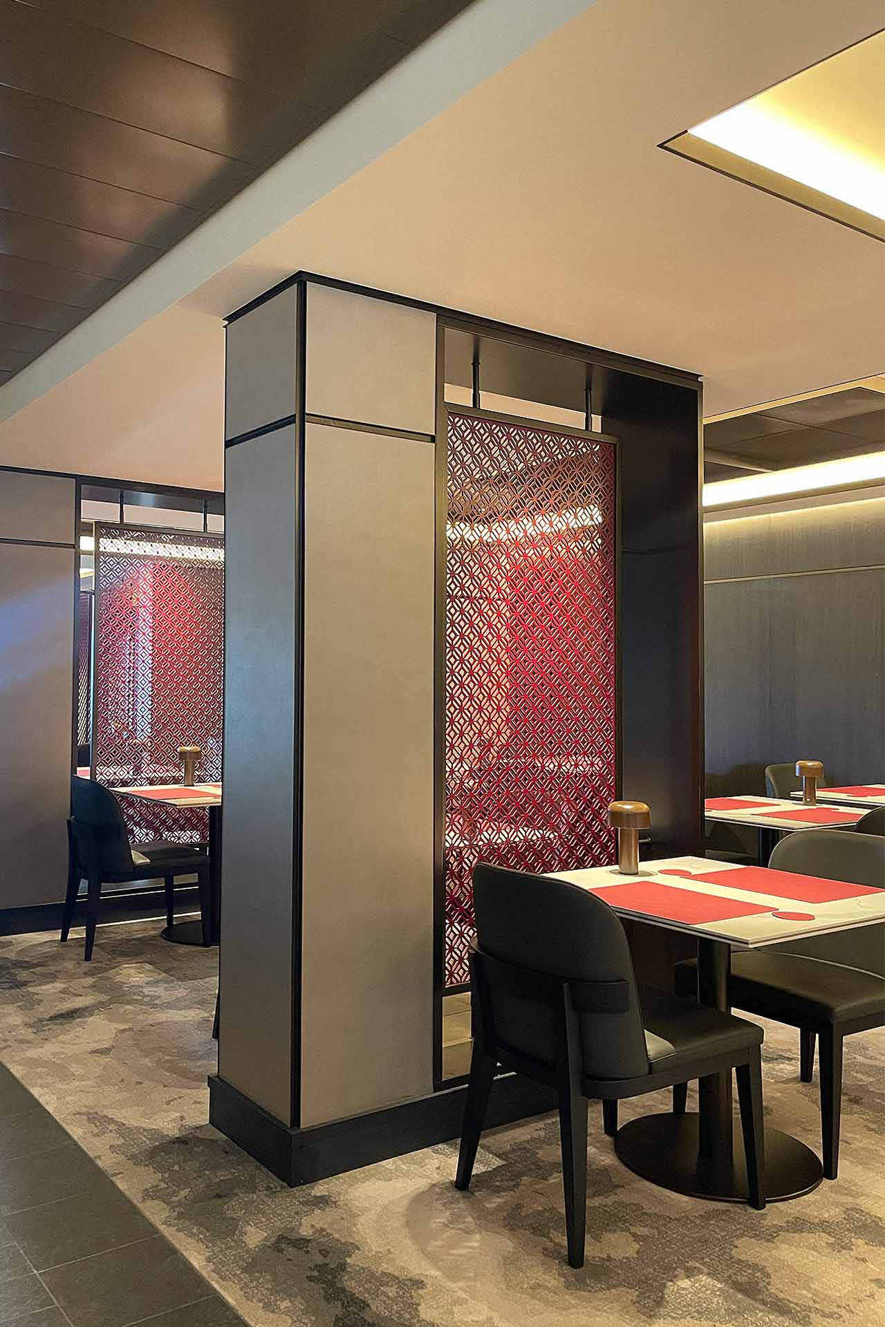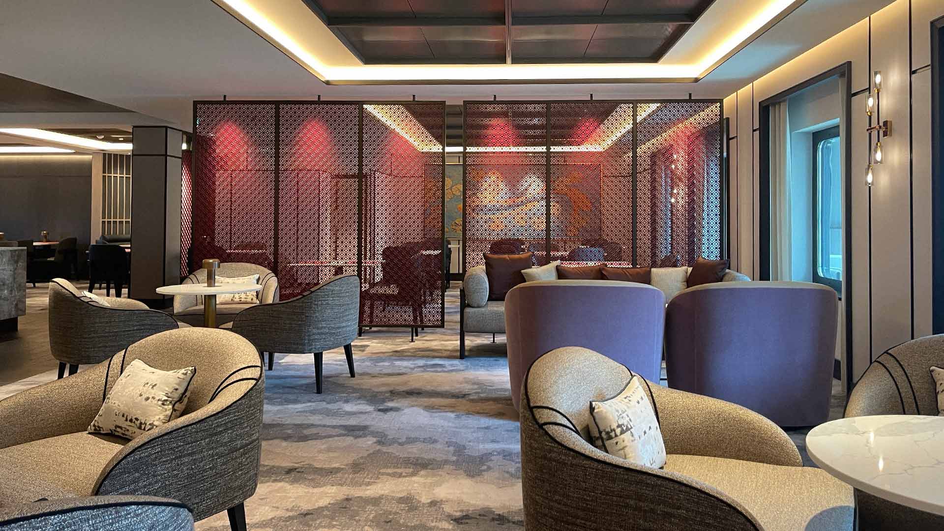 As superfícies de mármore cuidadosamente selecionado, madeiras de cor quente, detalhes metálicos suaves e pormenores de cor contribuem para uma atmosfera que equilibra minimalismo oriental com elegância contemporânea.